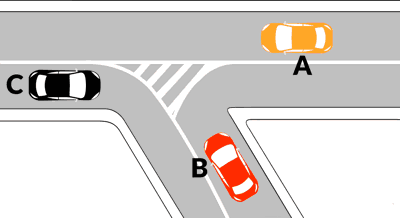 L'isola di traffico in figura può anche essere realizzata con strisce azzurre trasversali