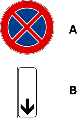 Il segnale (A), se integrato con il pannello (B), indica la fine del divieto di fermata e di sosta
