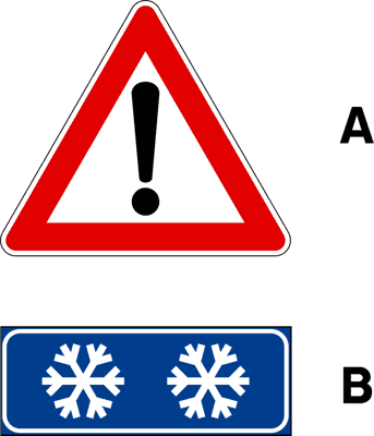 Il segnale (A), integrato con il pannello (B), preannuncia la possibilità di formazione del ghiaccio