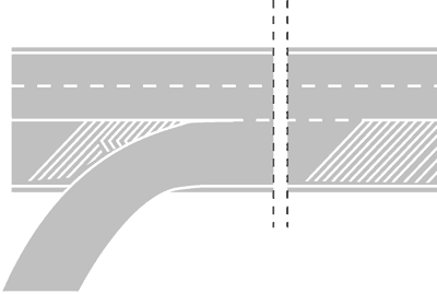 La striscia bianca laterale discontinua in figura divide la carreggiata da una corsia di accelerazione