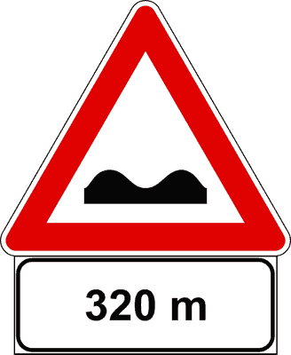 Il segnale raffigurato indica un tratto di strada deformata lungo 320 metri