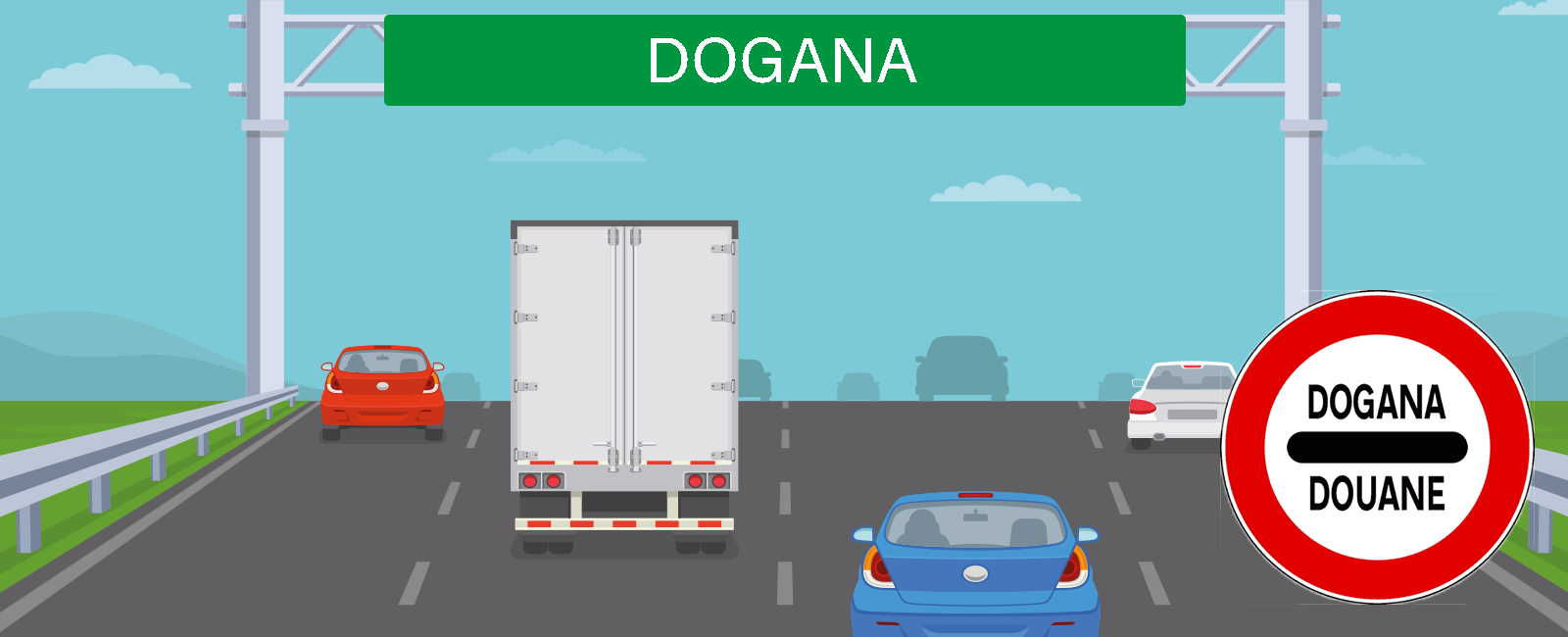 Il segnale raffigurato prescrive di arrestarsi.- al varco doganale.- alla frontiera per il controllo doganale.NB È UN SEGNALE DI OBBLIGO NONOSTANTE SIA UGUALE AD UN SEGNALE DI DIVIETO.
