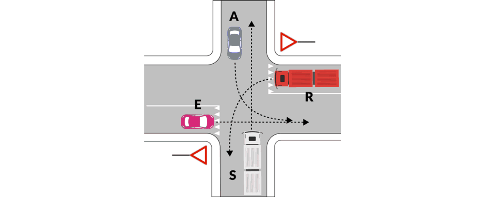 - il veicolo S transita prima di tutti gli altri veicoli.