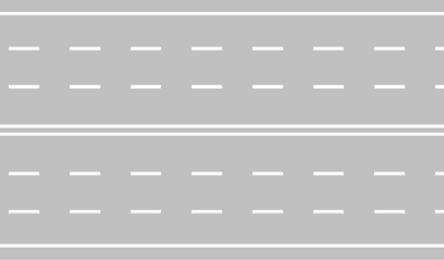 Nella strada rappresentata, per ogni senso di marcia, la corsia di destra è, di norma, dedicata alla marcia ordinaria